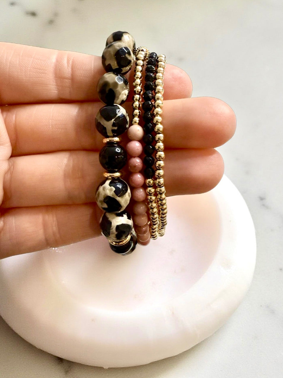 - Hand beaded on high performance .08 mm elastic for a slight stretch to easily roll on and off your wrist.