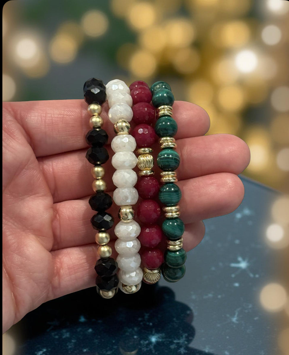 A radiant bracelet of deep red hues, symbolizing warmth, love, and holiday cheer. Perfect for adding a bold yet elegant pop of color to any festive look.