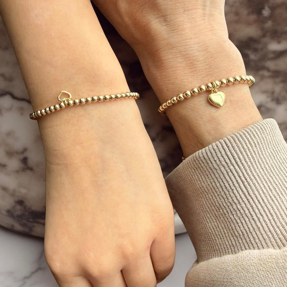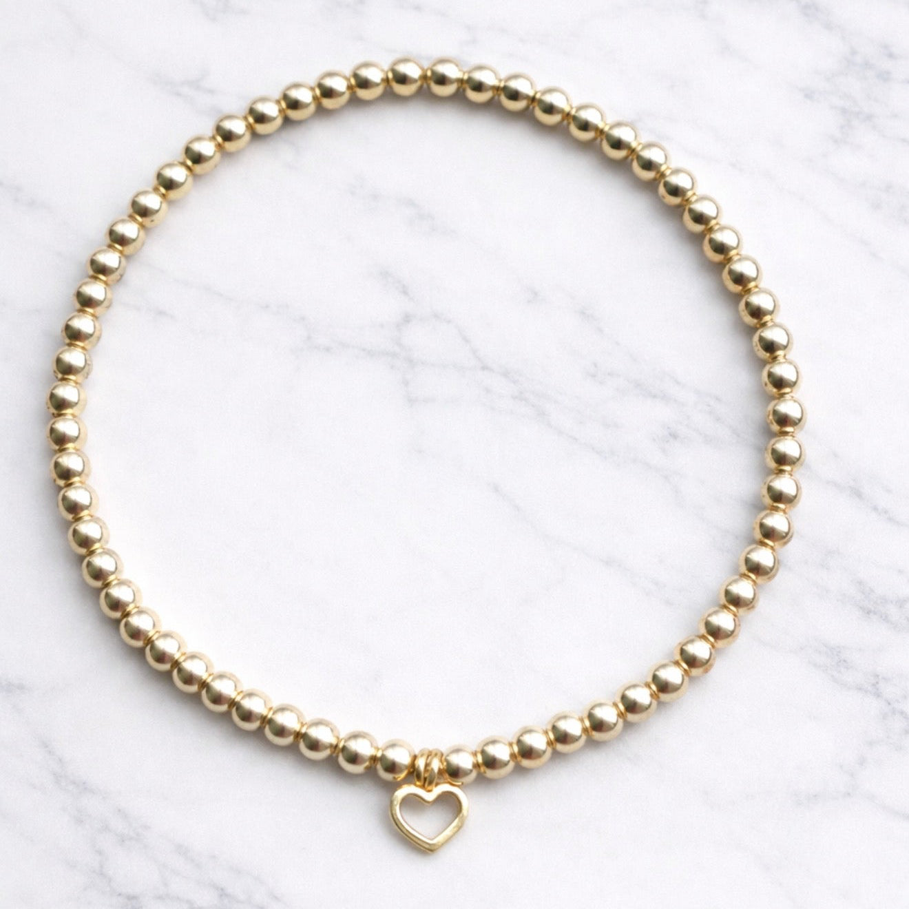 - Made with 3mm 14k gold filled beads and 14k gold filled 6mm open heart.