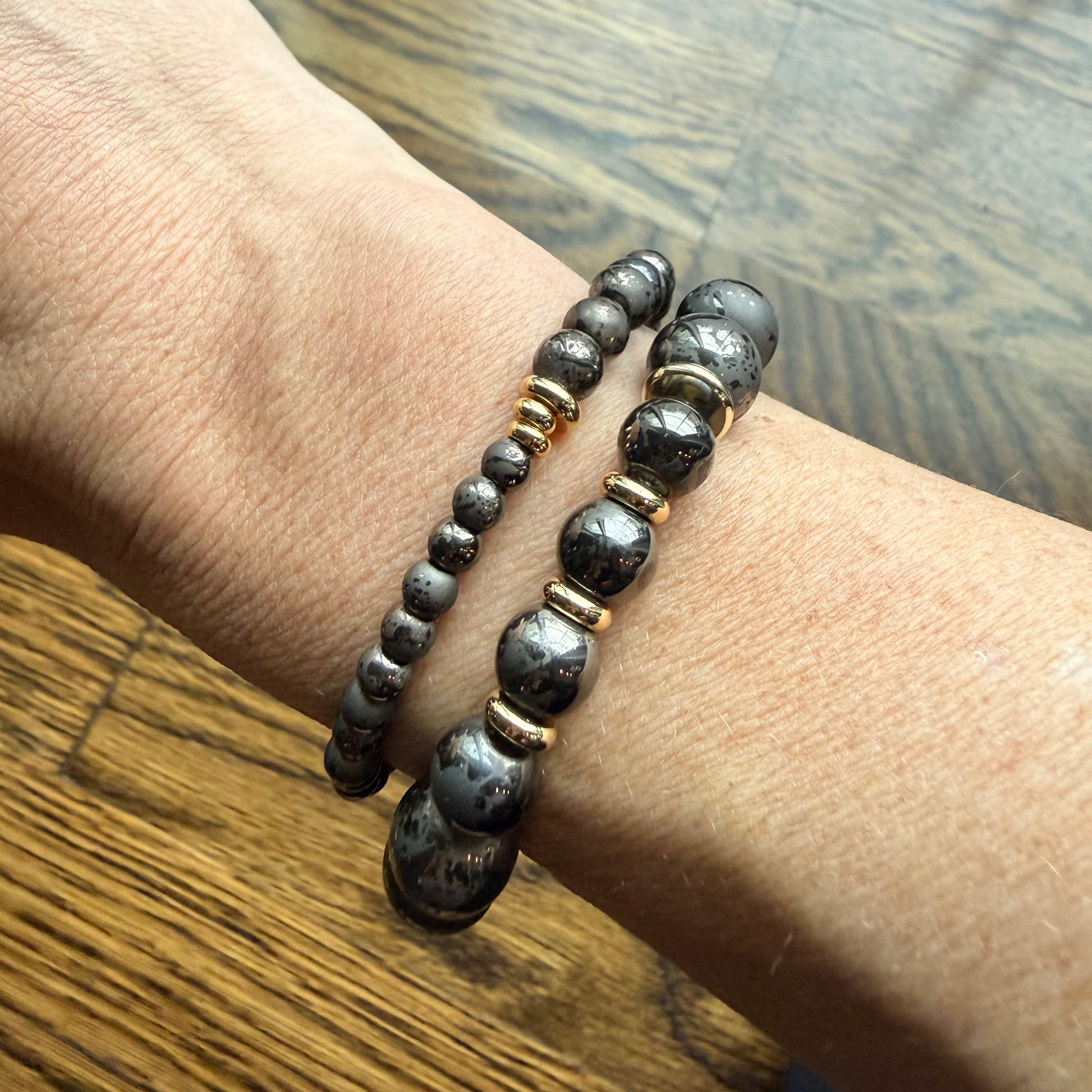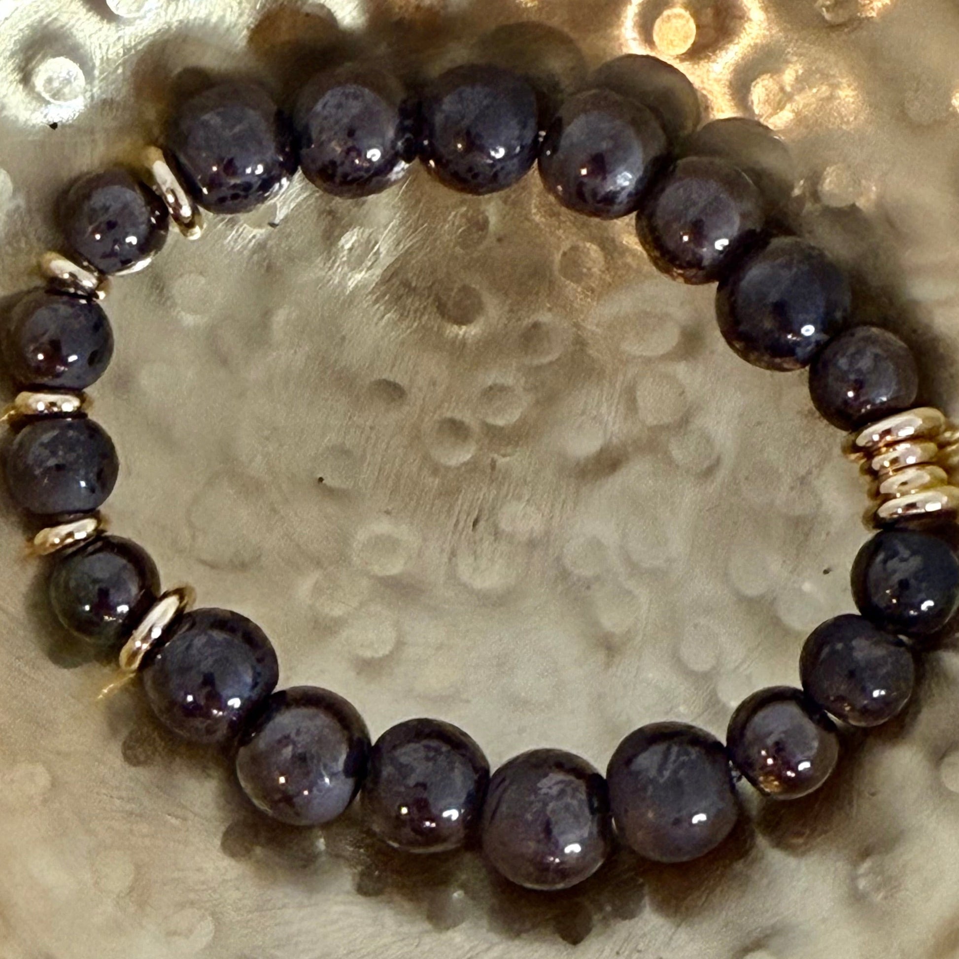 - Hand beaded on high performance .08 mm elastic for a slight stretch to easily roll on and off your wrist.