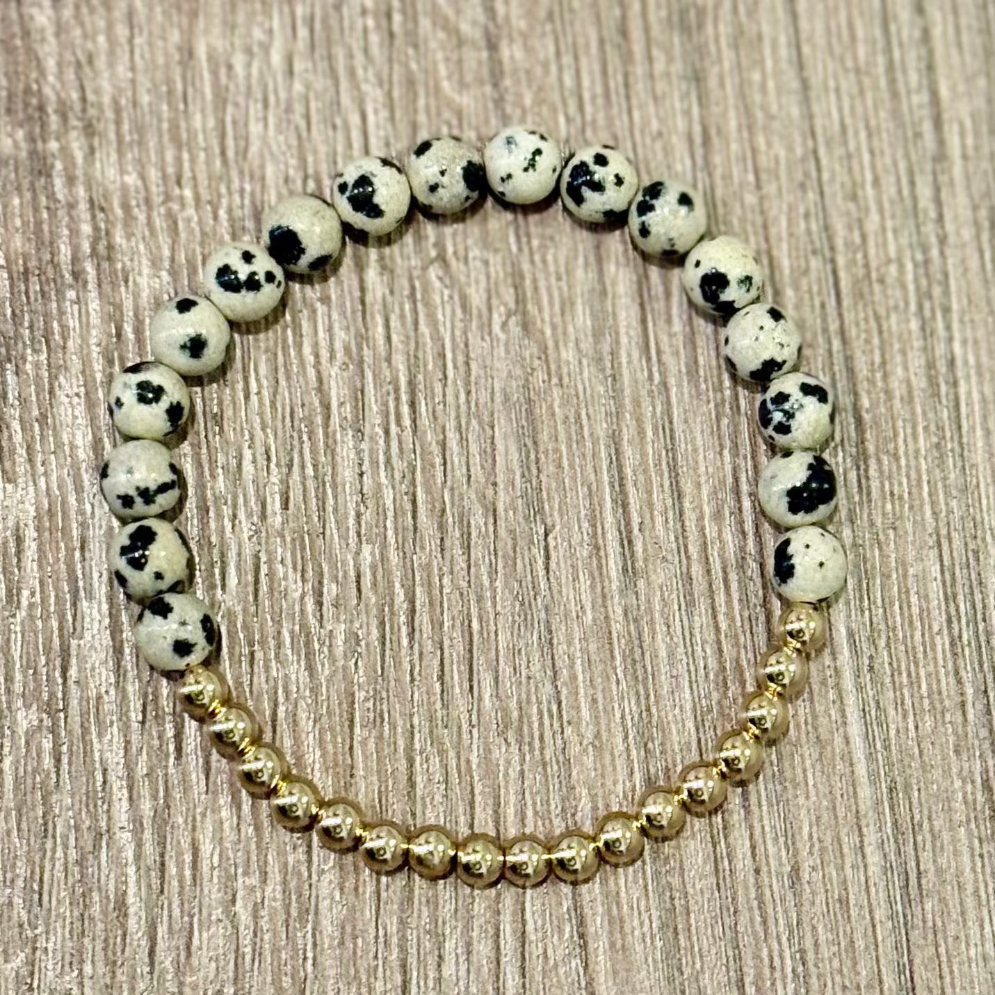 - Made with 6mm Dalmatian Jasper beads 4mm 14k gold filled beads.