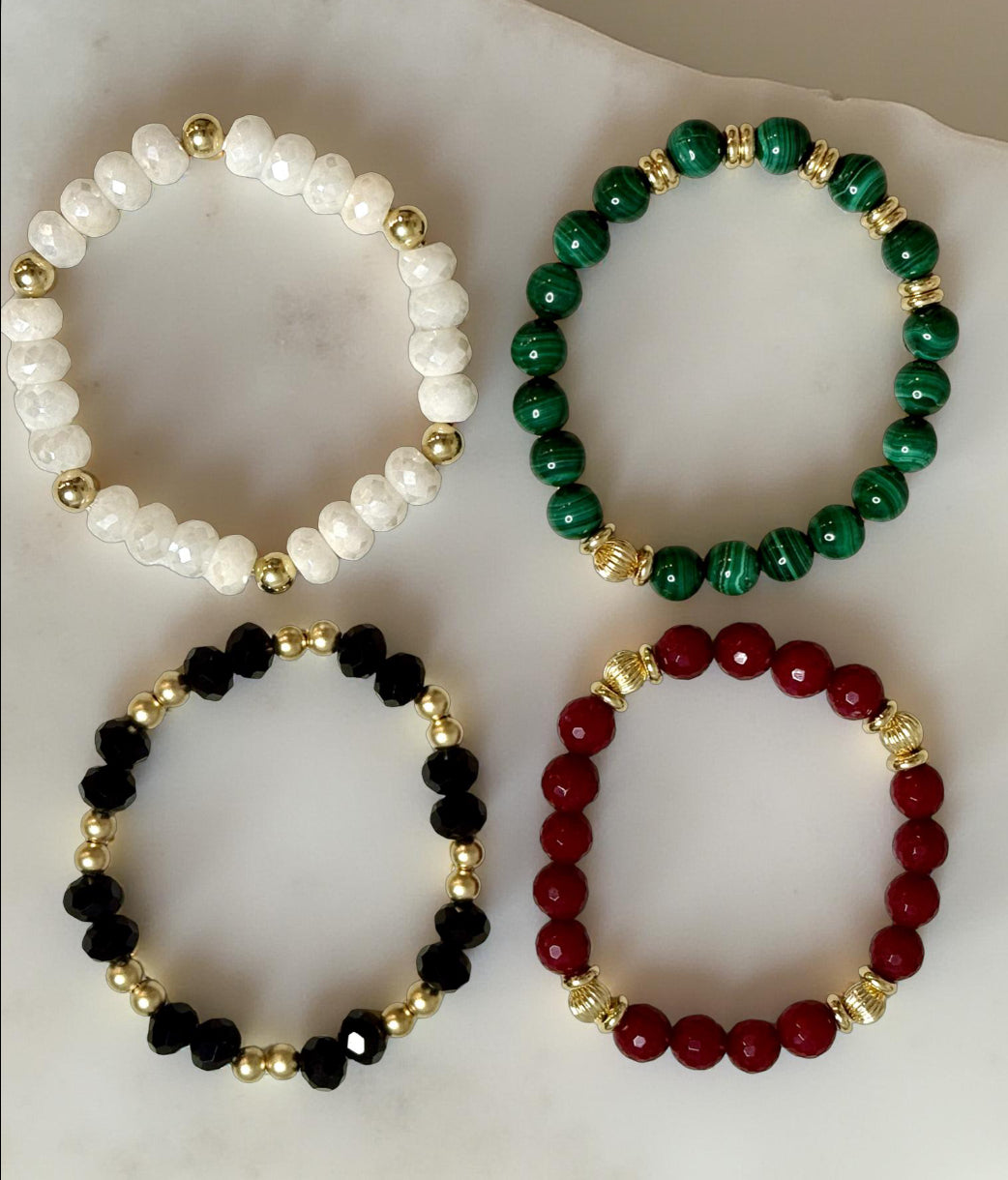 - Hand beaded on high performance .08 mm elastic for a slight stretch to easily roll on and off your wrist.