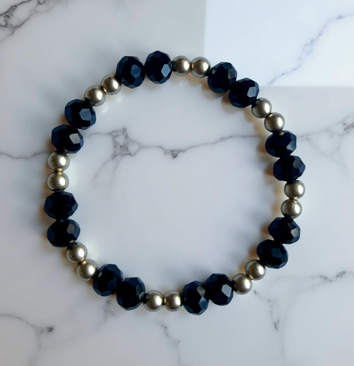- Made with 8mm Faceted black Opaque Rondelle Crystal beads and 6mm 14k gold filled beads.